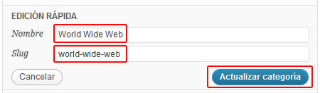Si se selecciona esta opción se visualizarán sólo los campos del «Nombre» y el «Slug» de la categoría, los cuales podrán ser cambiados.